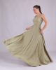Женское макси-платье на кулиске с квадратным вырезом — масляно-зеленое, разные размеры, ткань: хлопок, полиэстер и эластан, эластичное и струящееся