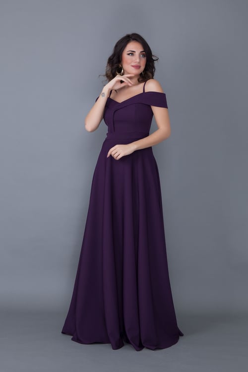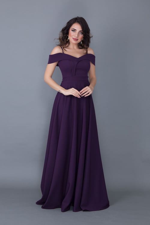 Женское макси платье с открытыми плечами и американской проймой, цвет: бордовый, состав: 100% хлопок-полиэстер, 16 цветовых вариантов, от XS до 7XL