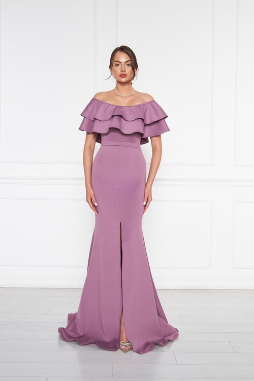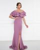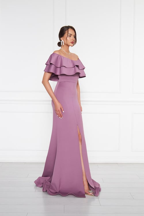 Женское макси платье с открытыми плечами и разрезом, эластичная ткань, цвет роза, размер 34-54, без молнии, рекомендована стирка 30 градусов