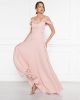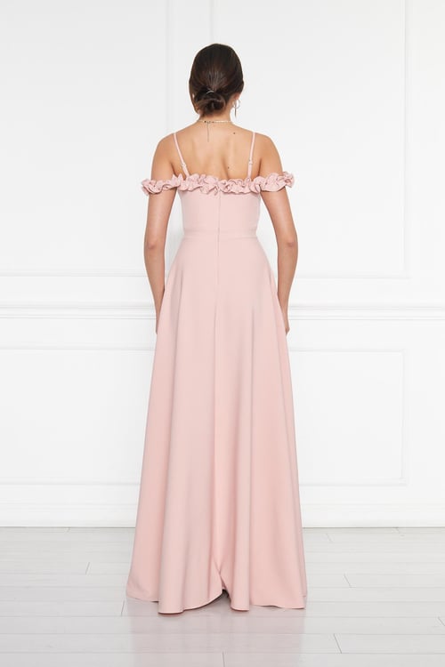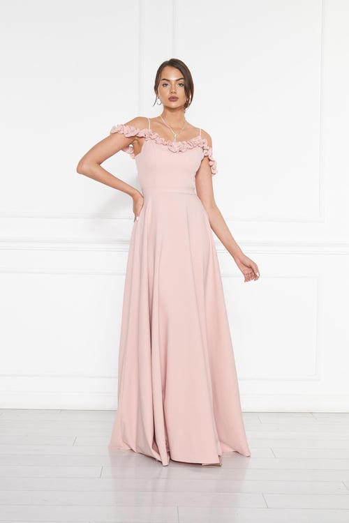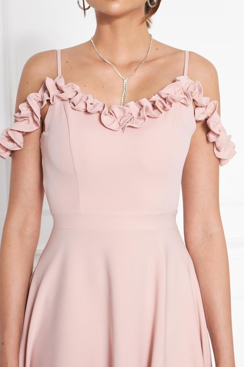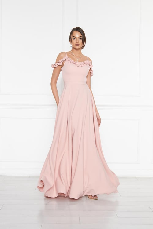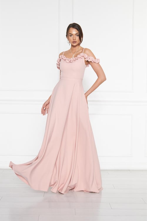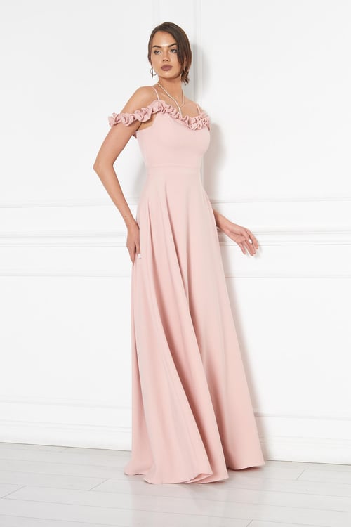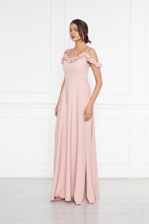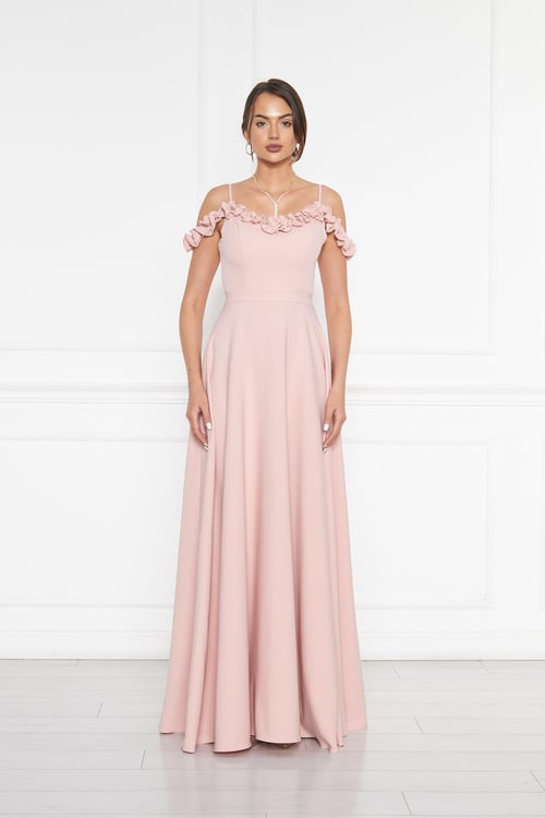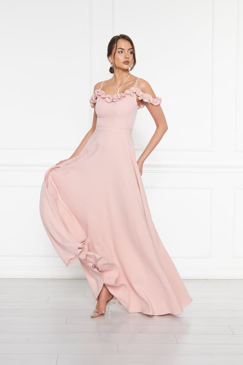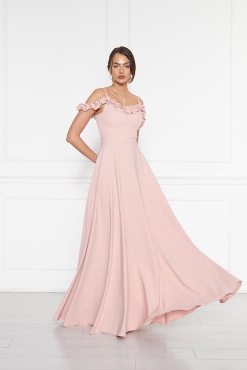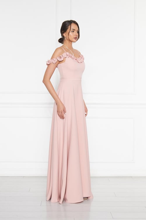 Женское макси-платье с регулируемыми бретелями и рюшами, ткань: хлопок-полиэстер-эластан, размер 34, цвет: пудровый, застежка на спине