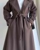 Женское пальто с шалевым воротником, поясом и длинными рукавами, кашемировое, коричневое, размер 40/42, длина 117 см, стильное зимнее решение