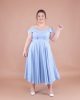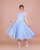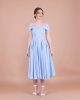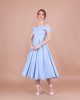 Женское платье-миди с низкими плечами и складками, цвет: светло-голубой, 16 цветовых вариантов, материал: хлопок, полиэстер, эластан