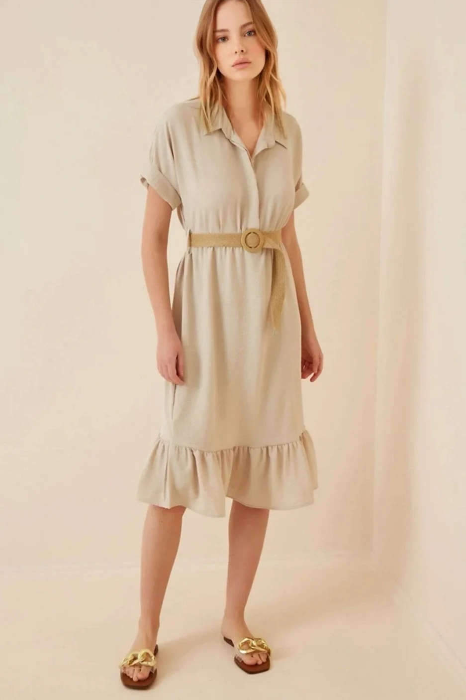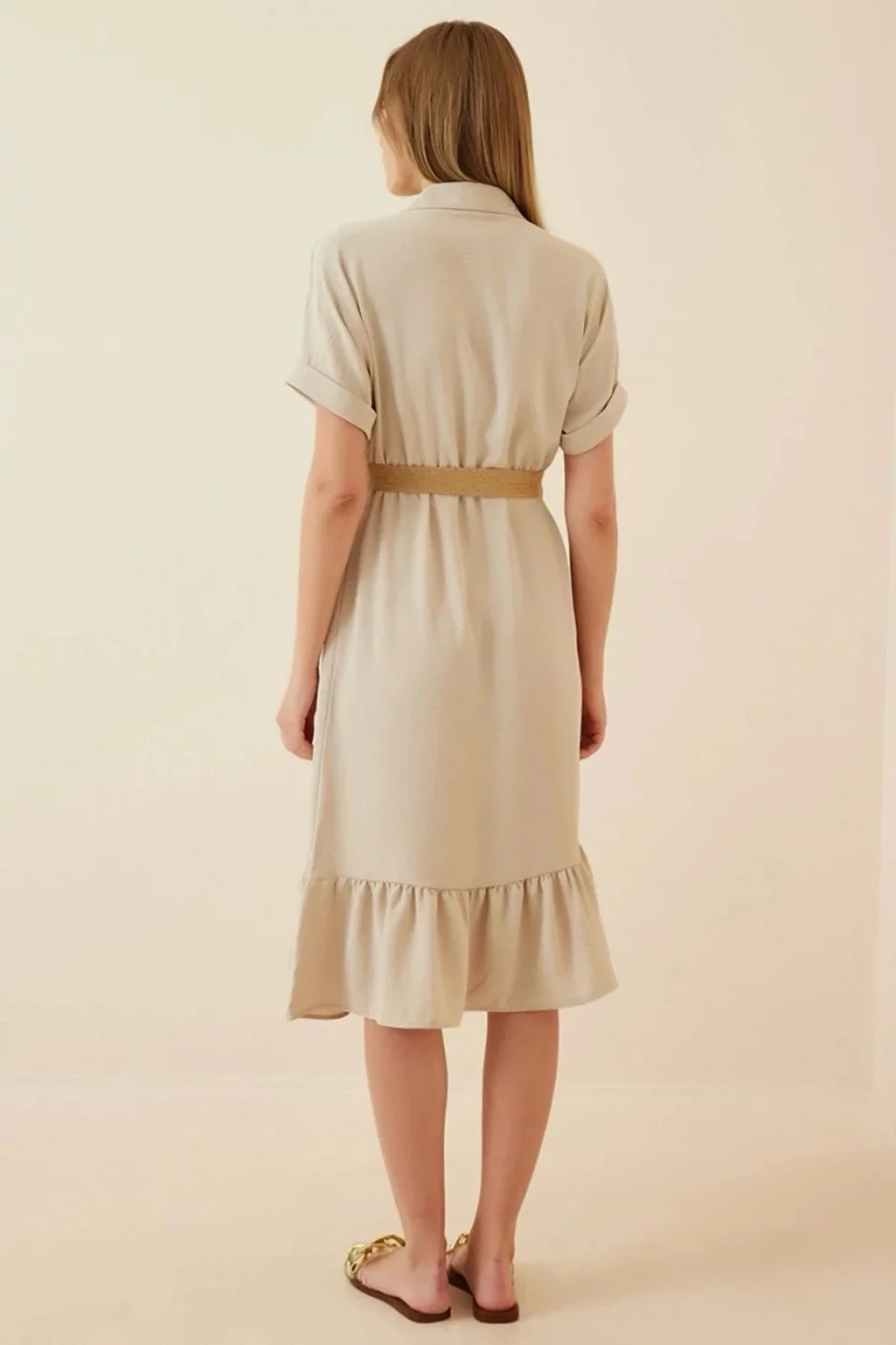 Элегантное платье с рубашечным воротником и пуговицами идеально подходит для современного гардероба. Изготовленное из высококачественных материалов, оно обеспечивает отличное облегание и комфорт в носке. Этот аксессуар с плетеным поясом подчеркивает талию, добавляя изысканности вашему образу. Универсальный дизайн позволяет легко сочетать платье с различными элементами вашего гардероба.Компания HAZELİN предлагает это платье, которое идеально подойдет для женщин, желающих выглядеть стильно и уверенно в любой ситуации. Детали, такие как удобный крой и продуманный фасон, делают его незаменимым элементом для работы или вечеринки. Выразите свою индивидуальность с помощью этого уникального изделия от HAZELİN.