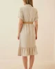 Женское платье с воротником и пуговицами, с поясом из ротанга, из ткани Айробин, цвета визон, производство Турция