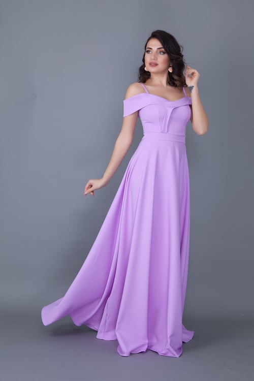 Женское вечернее платье с открытыми плечами, макси длина, цвет лиловый, ткань: хлопок-полиэстер-эластан, 16 цветовых вариантов, размеры от XS до 7XL