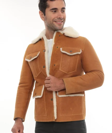 Мужская куртка Trucker Jacket из овчины (коричневая)